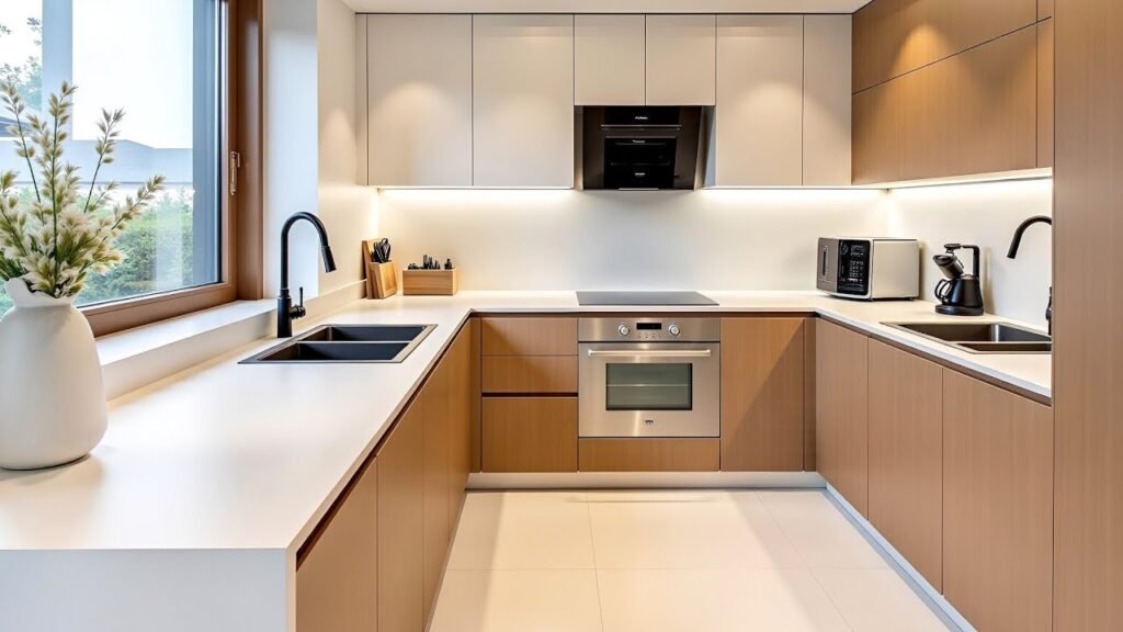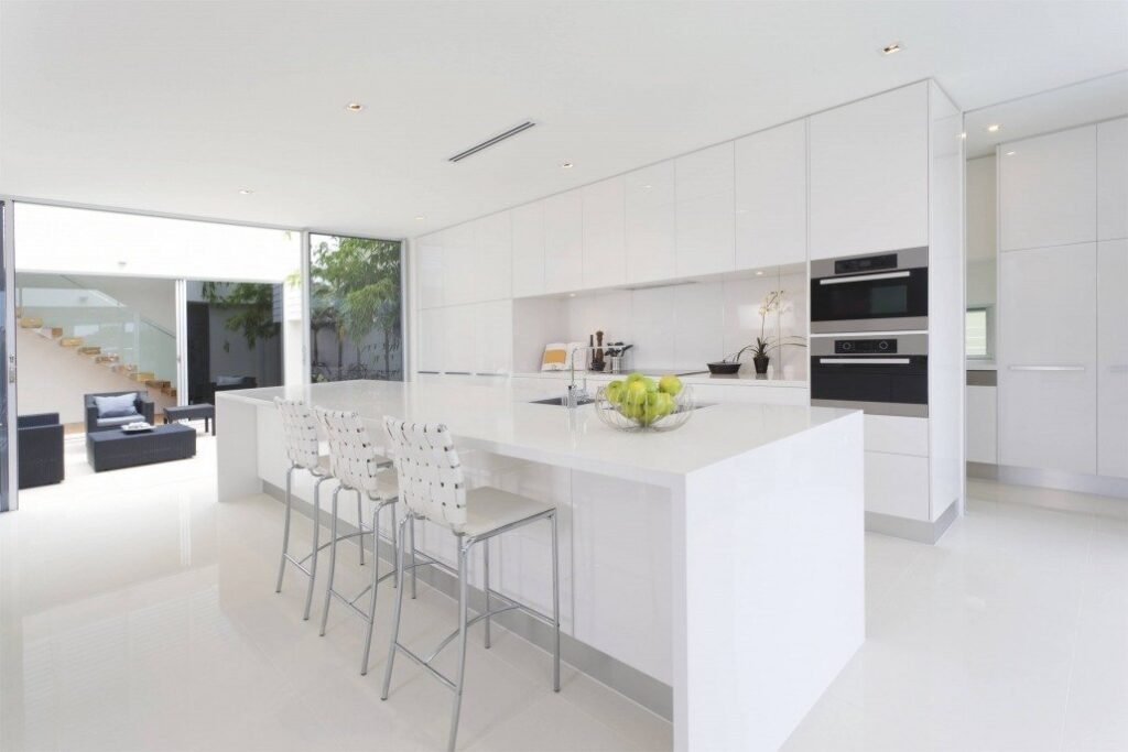 Les armoires de cuisine laquées sont les plus élégantes parmi toutes les options. Les portes laquées sont fabriquées en appliquant une peinture laquée à base de polyuréthane sur un MDF de première qualité. Comme il s’agit d’une peinture, elles peuvent être colorées dans n’importe quelle teinte unie. Les armoires de cuisine laquées offrent l’apparence la plus sophistiquée. De plus, comme il s’agit d’une application de peinture, il est possible de tracer n’importe quel motif sur le MDF utilisé à l’intérieur. Grâce à leur surface lisse et leur aspect raffiné, ce sont les façades les plus prestigieuses. Elles sont également durables, puisqu’elles peuvent être repeintes à volonté.